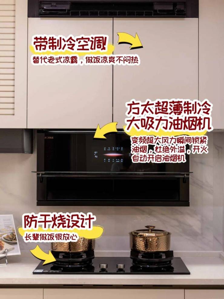 🥇方太超薄制冷大吸力油烟机——只要开启燃气灶,油烟机就会自动开启,大吸力风压1200。其他项目油烟机做的挥手开关升降,但我们觉得广州12月里有9个月都是天气炎热的,所以我们给业主配备方太目前最新的制冷油烟机,区别传统凉霸的往下吹风(会影响灶火火力),这款油烟机是带制冷压缩机的,冷风横吹面部和后背。官网价格💰¥21399元