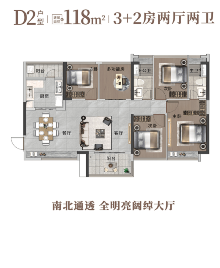 6. 118㎡五房二卫户型