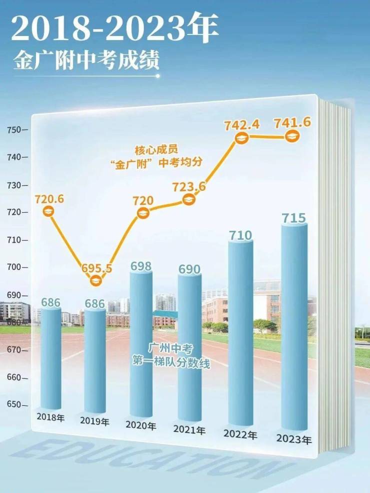 白云广附云湖学校师资亦是势力雄厚,近年来,白云广附中考成绩一直名列广州前茅,以白云广附核心学校金广附为例——继广州中考成绩五连冠后,2023年又拿下了广州中考平均分741.64分,最高分770的好成绩。2023年5月底,广州市招考办公布2023届广州中考自主招生初审名单,入围人数为全市之首。奥班体系平均分再创新高,达到惊人的746.8分。