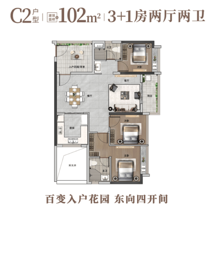 4. 102㎡四房二卫户型