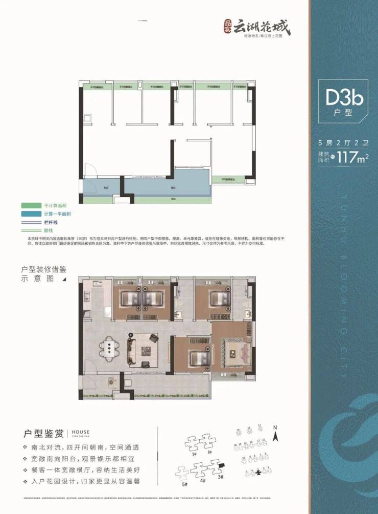 3. 117㎡五房二卫户型