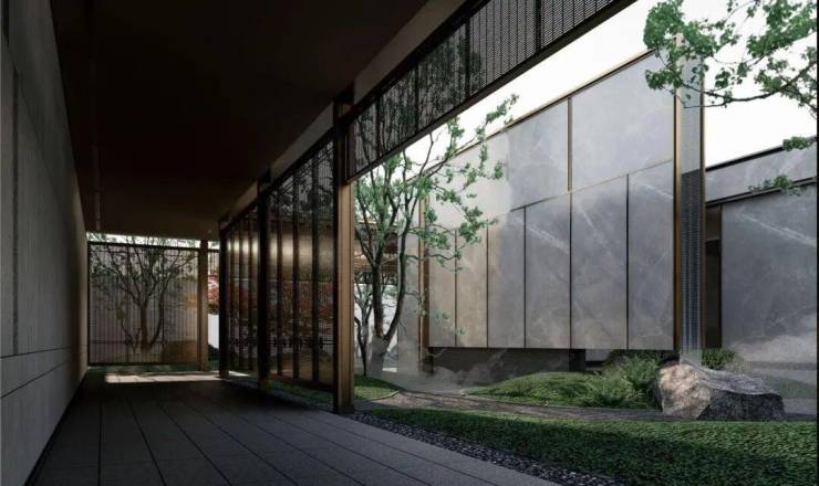 园林采撷《梁园飞雪图》画中意境及神韵,引入曲水飞虹、万倾涵碧、松间、观澜、林隐等景观组团,再现“枯山水”东方禅意画卷,缔造具有东方韵味的新中式之美。