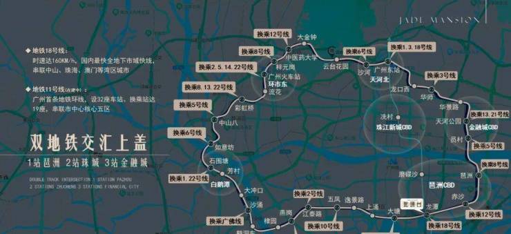⑦ 地铁11+18号线双轨交汇枢纽(1站琶洲-2站珠江新城-3站金融城)