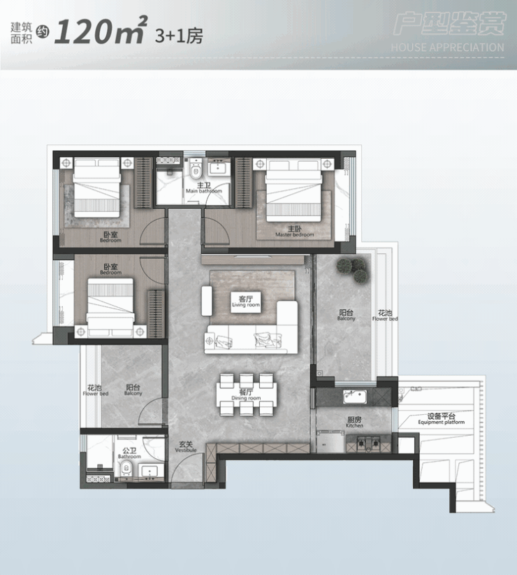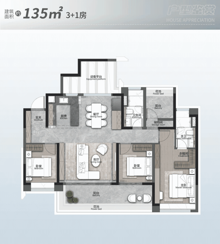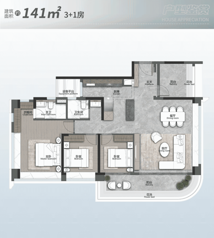 而约141㎡3+1房,则在空间感、品质感上全面进阶。