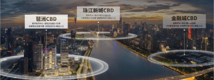 市中心“珠江新城+金融城+琶洲”构筑城市级CBD黄金三角,未来片区经济实力有望跃级提升。