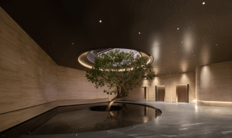 ⑦接待大堂丨内外无界,仪式尊荣 ——车马厅微景观庭院,连通接待大堂,越秀商管礼宾晨送晚迎,演绎归家尊荣礼遇。