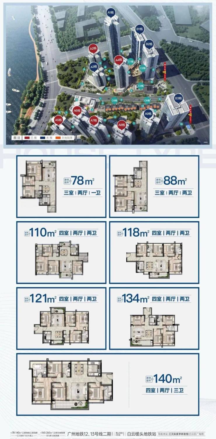 在售户型:78-140㎡洋房/165-265㎡别墅/50-74㎡公寓