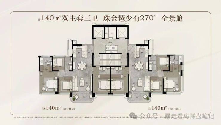 ◎产品配置:北区2T3/3T4塔楼,南区2T2板楼,建面约90-120-140-170-210㎡云幕平层