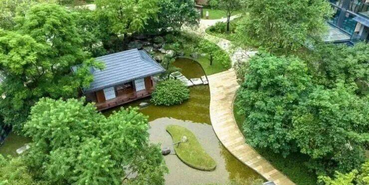 小区园林“四谷三庭”的空间布局,不像传统豪宅园林那样“扁平”,而是非常立体。在这里,项目借助砂、石、水、木等元素,营造山水庭院的禅意。搭配上樱花树等各种花期不同的树木,也算是把“四季”风景搬到小区楼下。