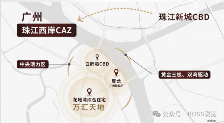 目前荔湾的白鹅潭核心区、聚龙组团、花地湾组团形成黄金三极格局,分别侧重于“产” “商” “居”,促进人城产深度融合,重新打造广州城市副中心。