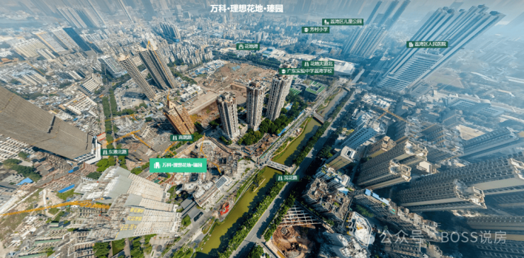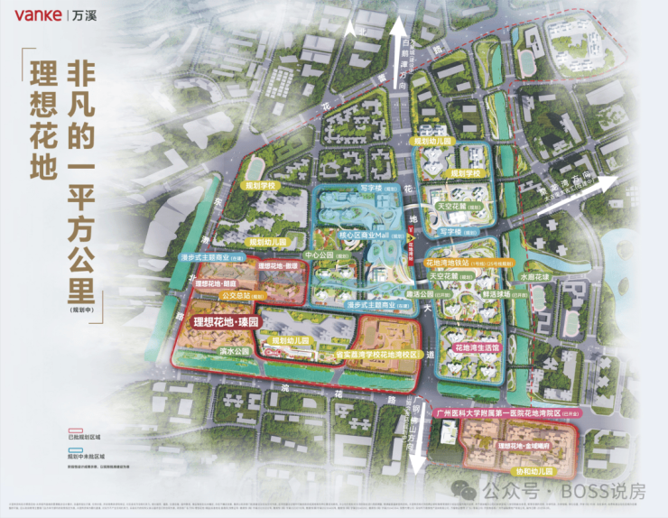 万科理想花地·臻园是万科广信资产包的一部分,总占地1平方公里,连片开发比广钢新城还要大,片区中包含了6所幼儿园,和5所中小学,规模之大。