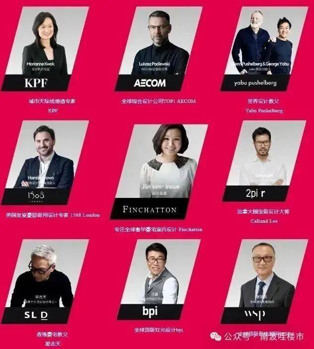广州鹏瑞1号的落成由美国KPF(建筑设计)、AECOM(园林设计)、Yabu Pushelberg(室内设计)、梁志天设计、香港CCD事务所等深圳湾1号原班设计大师团队,还有“豪宅专家”英国1508 LONDON、英国FINCHATTON等大师一同参与。
