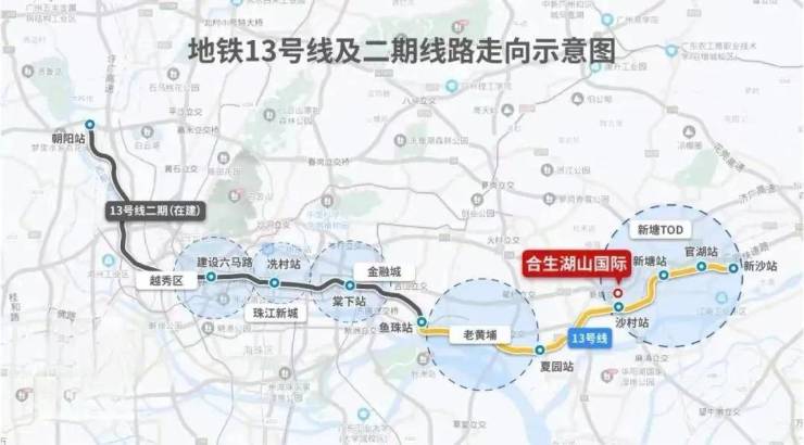 5公里左右还有已开通的地铁13号线的沙村站,4站就到黄埔,9站到天河。