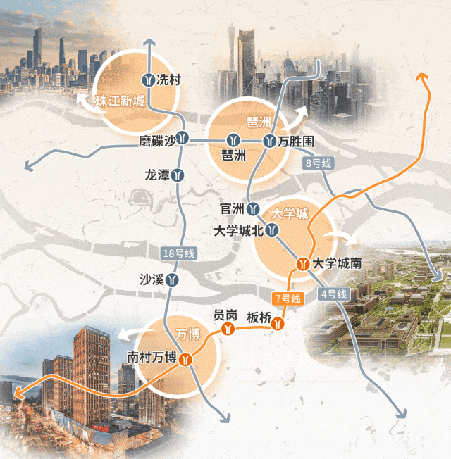 - 地铁通勤:7号线串联万博、大学城、琶洲等核心板块,通勤便利性突出。