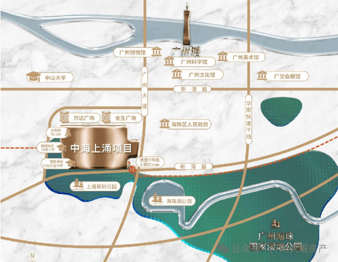 挨着面积高达1100公顷的海珠国家湿地公园,是广州中轴上的超级绿肺,南面隔新滘西路就是海珠湿地上涌生态科学院,周边环境优美,绿意盎然,生态方面确实没有什么挑的
