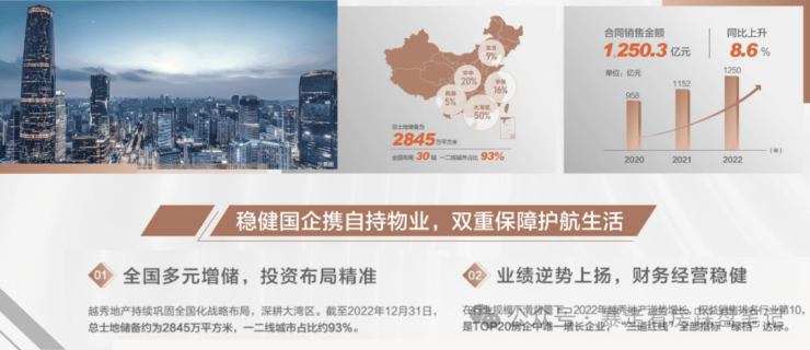 【2022年销售额1250.3亿,蝉联广州TOP1;2023年TOP20房企增长率第1,“三道红线"全部指标"绿档"达标。数据来源:克而瑞】越秀地产1983年成立,是中国第一代商品房缔造者41年长足发展,布局全国超30城,深得超100万业主的信赖