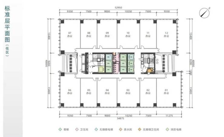 低区:7-13层,单元面积138平方米 ~全层2063平方米