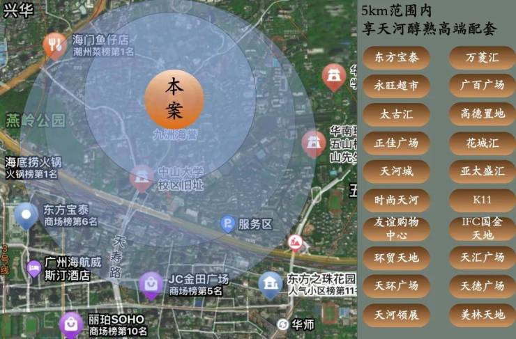 「项目周边生活氛围浓厚,五百米范围内酒楼超市影院齐全」,配套学校、医院、公园应有仅有。且项目瞬间抵达天河中心商圈,开启零距离的购物生活。旺中带静,超高的居住舒适度。
