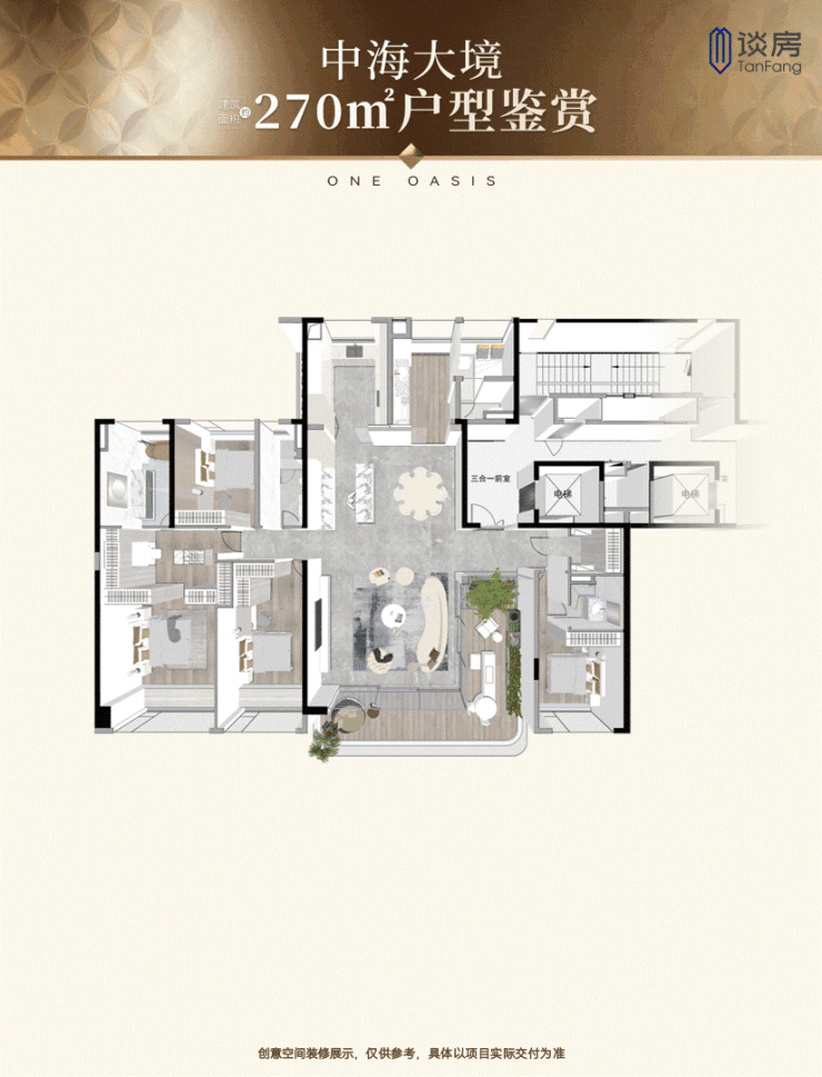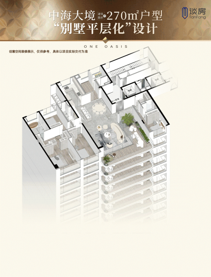 因此,项目专门打造了建面约270㎡的大平层户型,用大尺度丈量高阶人士的生活。