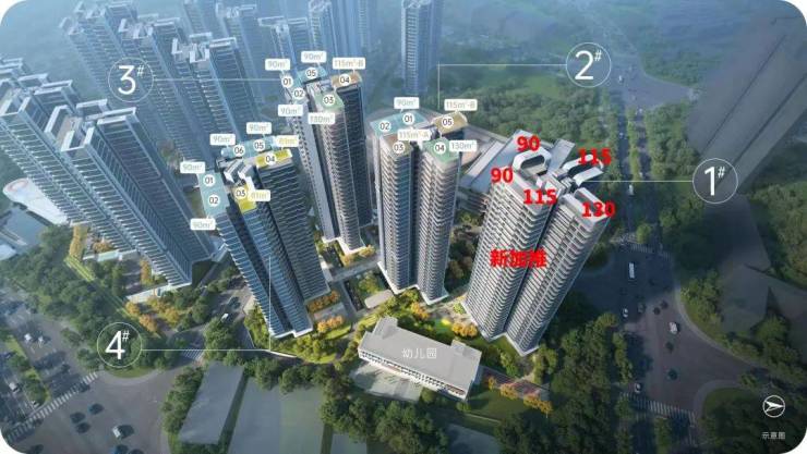 目前在售北地块2、3、4栋的尾货,还有最新加推的1号楼,建面约81-130㎡户型,户型图如下: