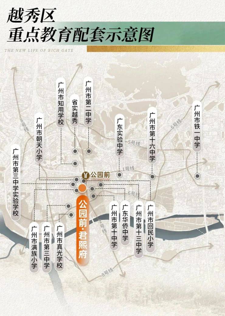 与此同时,你还能高效坐享广州至精华、浓度至高的生活配套。约400米直达1/2号线交汇点公园前站,3公里内5地铁,快速通达全城;约530米尽揽北京路商圈,广百百货、北京路天河城等高端商业及广州酒家、陶陶居等老字号触手可及,萦绕满满的烟火气与缠绵生活感。
