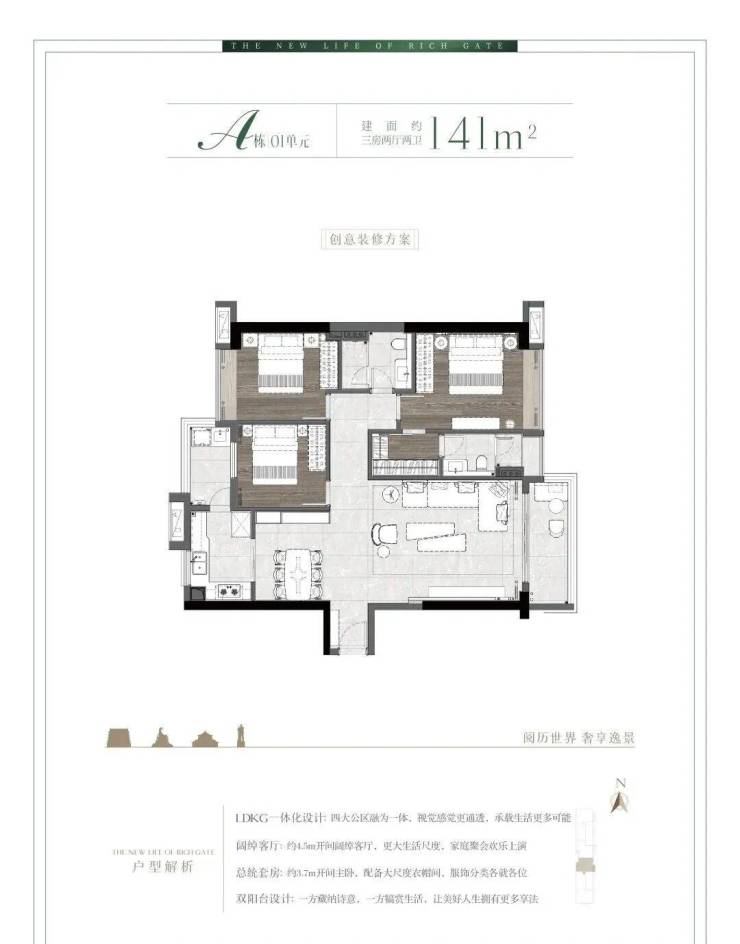 2梯3户全屋对流板式设计,通风采光俱佳,在城芯显得弥足珍贵;LDKG一体化奢阔大方厅、L型飘窗270°巨幕视野等设计,满足家庭成长的改善居住需求,诠释阔绰宽境大家风范。