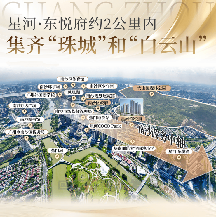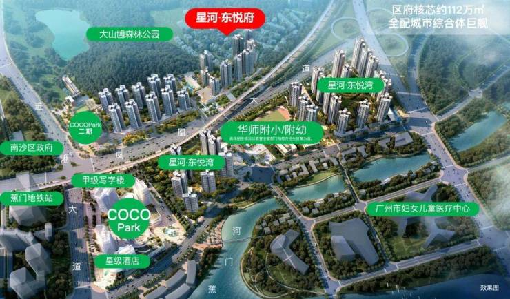 2,区府核心,不会存在画饼的现象 ,全是 “现成能用” 的配套,配套全不用等2公里内覆盖政务中轴、大山乸森林公园、蕉门地铁站、星河COCO Park、华师附小等优质配套,生活便利度高,无需等待配套落地。