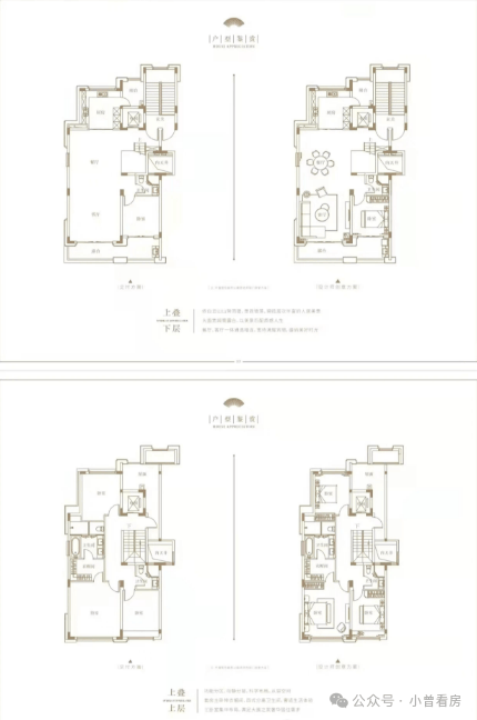 上叠,建面约240㎡,独立入户,首层是独立会客厅和长辈房,二层是三间卧室。