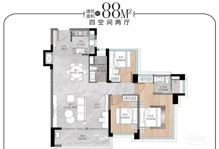 🔹建面约88㎡一步到位四空间