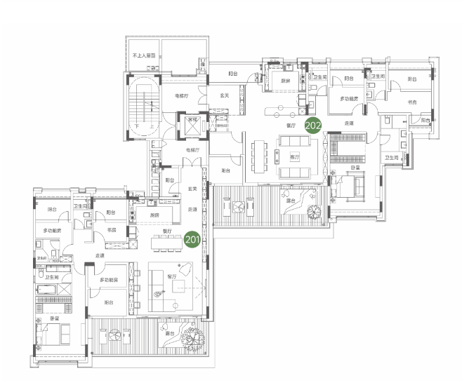 临河而居的生态居所,从风水上来讲,自古水为财,这样的布局正是水融气聚财源滚滚之局,可谓三生万物、生生不息。