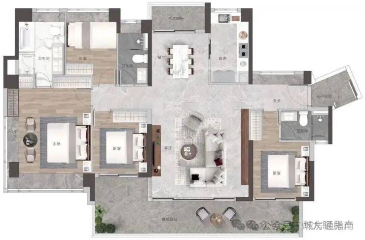 双主套三卫布局,轻松容纳大家庭,多代同堂其乐融融