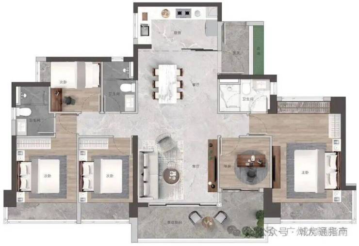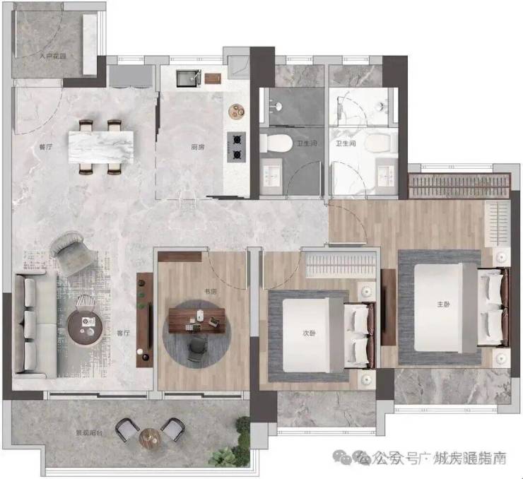 高配双主套三卫,书房可作主卧延展空间,打造总统级套房