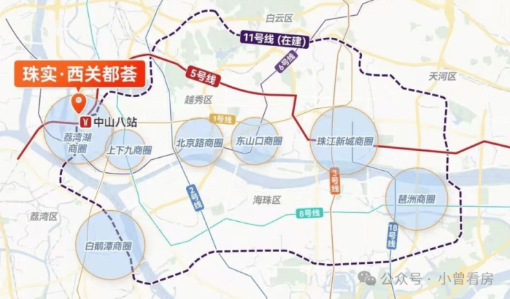 交通出行是项目的突出优势,对于上班族格外友好。距离地铁5号线与在建的11号线中山八站仅500米左右,搭乘地铁可直达珠江新城、琶洲、金融城等核心商圈,通勤效率有保障。