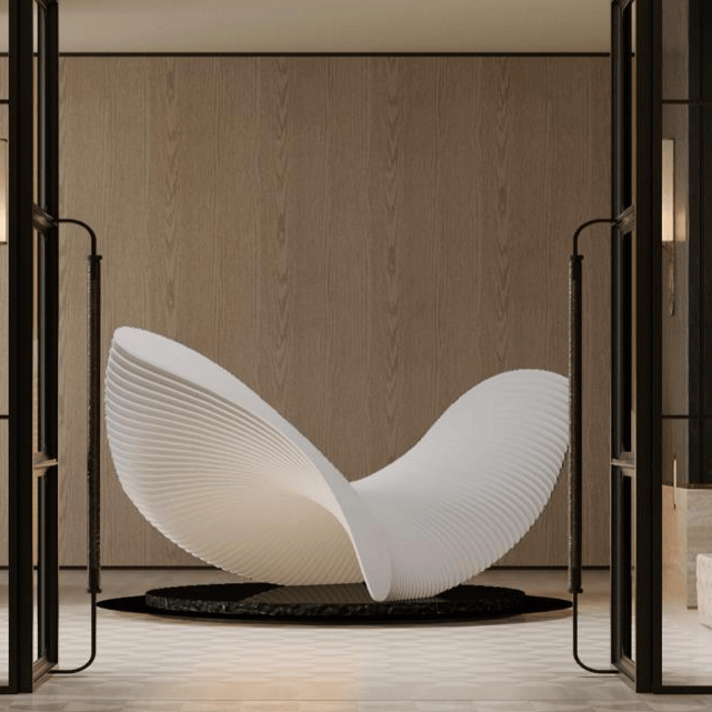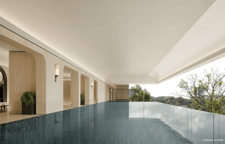 海上会客厅首层名为《扬帆》的非遗手工木雕与《丝绸之路》艺术装置,直指广州千年向海而生的历史,寓意业主于此扬帆起航。四层的泳池区域采用灵动的拱顶设计,致敬广州骑楼的独特风韵;细腻提取的沙面建筑外墙色调,与精巧融入的花窗图案,于方寸间还原广州中西建筑文化交融的独特视觉。游弋其间,身心俱沐于城市文脉的浸润之中。