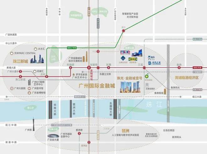 珠光·金融城壹号落子广州国际金融城东部门户要塞,西临珠江新城,北接天河智慧城,南为琶洲商圈,东接黄埔临港经济圈。