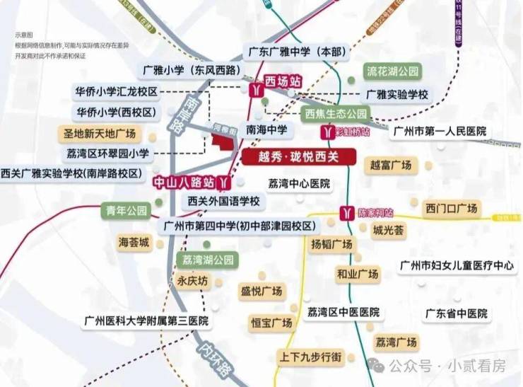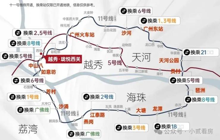 地铁:项目位处老西关板块核芯,临近地铁5/11号线(在建中)中山八站,未来2站陈家祠/纪念堂,3站公园前,零换乘直达珠江新城、琶洲、金融城三大CBD;