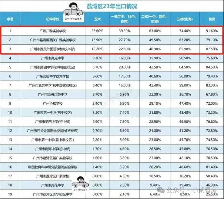 根据近几年的荔湾周边初升高资料可见