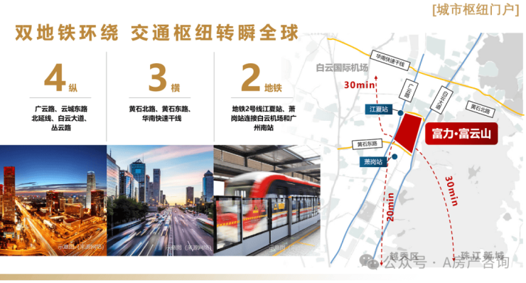 项目距江夏地铁站-C口679米,距离地铁萧岗站不到1公里,项目周边3公里范围内拥有双地铁线路,广州白云站也仅3.5公里,15分钟即可抵达越秀老城区,20分钟直达珠江新城。项目紧邻主干道和高速公路,无论是市内通勤还是省际往来,交通十分便捷。