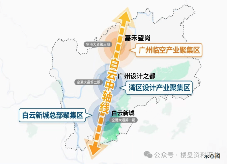 千亿级投资产业集群白云区是广州面积最大、人口最多的中心城区(数据来源:广州市统计局,信息采集时间为2025年1月),以白云新城、设计之都、嘉禾望岗TOD三大板块串联组成白云城市发展主轴,而设计之都在经济发展主轴核芯位置。