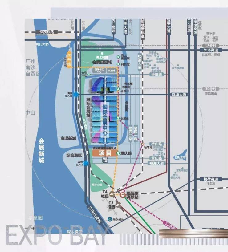 城市陆路枢纽: S3沿江高速、外环高速、广深高速、京港澳高速、深中通道(在建)、妈湾跨海通道(在建)等交通网络全面覆盖,紧扣城市脉搏,畅达深圳全城及周边城市。