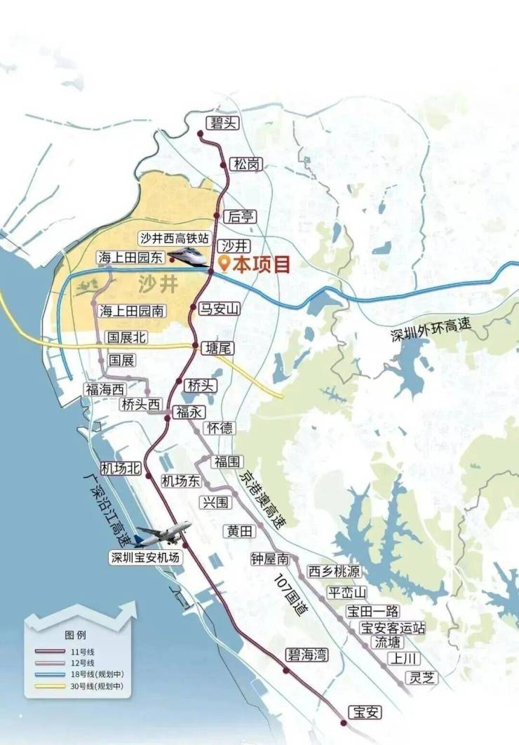 全维顶配生活圈,兑现国际都会便利: 项目周边半径内,壹方城、欢乐港湾、滨海艺术中心、湾区书城等顶级商业、文化、休闲配套环伺,步行或短途车程即可抵达。同时,坐拥地铁1、5、11号线及多条主干道,高效连接前海、南山、福田,生活便利性与都市效率无可挑剔。