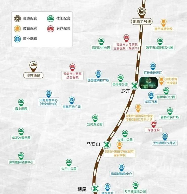 步履如织的璀璨之地,流淌着这座城市最澎湃的潮流与脉搏。项目毗邻深圳最大罗马主题市场休闲广场“新桥市民广场”、深圳西部最大综合体育场馆“新桥体育馆”,近享深圳四大古墟之一“清平古墟”、深圳历史文化遗迹“沙井古墟”,宝安人才林公园、凤凰山森林公园环绕。