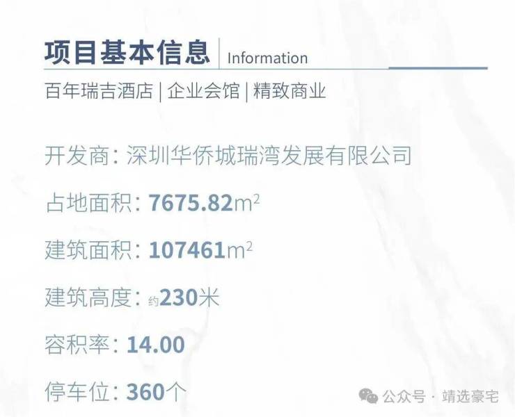 深圳华侨城.瑞湾府(别名瑞湾公馆)位于前海宝中,项目东侧及东北侧临近海滨广场,距欢乐港湾1公里,是集企业会馆、奢华酒店、精致商业于一体的垂直综合体。项目建筑高度约230米,占地面积约7700㎡,拥有建面约130-360㎡的珍藏大平层,配备高端商业瑞湾荟和百年奢华品牌瑞吉酒店。周边交通便利,配套齐全,是深圳大湾区的商务新地标。