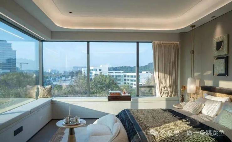 约37㎡酒店式主卧套房,配备约 11 米 L 型飘窗、步入式衣帽间等,演绎 "湖居即日常" 的奢侈。