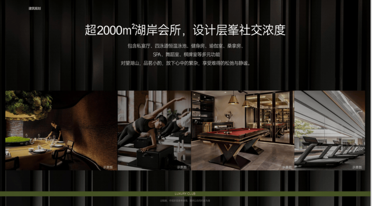 内部还奢侈地打造了一个约2000方的湖岸会所,背靠住区、望湖而筑,这样的规划非常巧妙,比如有四标准泳道的恒温泳池,还特别定制了极富层次的儿童池、按摩池