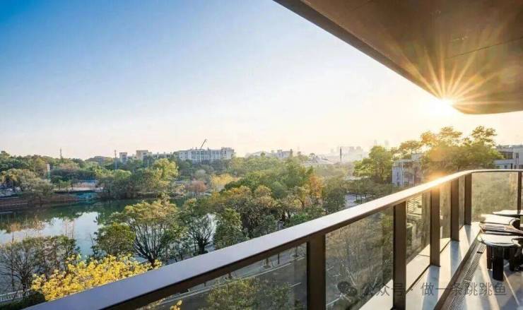 约 25 米超长景观界面与约 15 米 L 型巨幕转角阳台,如 "自然引景器" 般,将湖景引入生活,尺度堪比私人度假区。