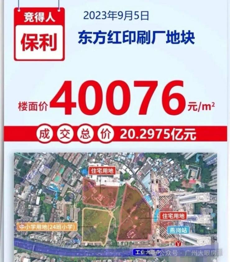 2023年9月,保利以折合楼面4w把东方红印刷厂这块地拿下