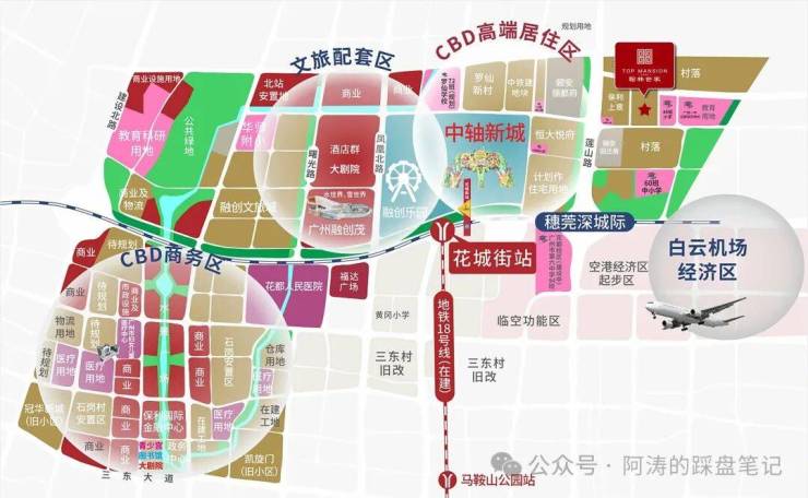 规划范围7.66平方公里,是广州北部CBD和文化旅游综合体。同时受空港经济区+广州北站“两大空铁联运”综合枢纽的双重辐射。从珠江新城物业的升值曲线来看,中轴线物业,是财富升值的头等舱。