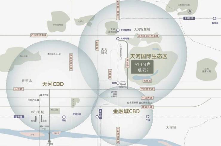 一、【核心区位】CBD黄金6公里,天河国际生态区择址天河国际生态区核心,与两大经济引擎天河CBD和金融城CBD,保持约6公里的直线距离。北接沈海高速、环城高速,南接广园快速路、华南快速路,快速通达各大商圈。