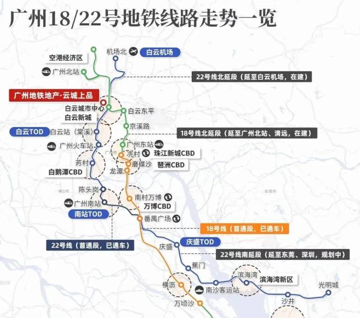 广州地铁18号线,对外链接大湾区西部,对内链接广州CBD区域,串联广州东站、琶洲、珠江新城、万博中心、南沙等核心区
